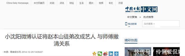 参考贵府: 中国日报——小沈阳微博认证将赵本山门徒改成艺东说念主 与师父抛清干系